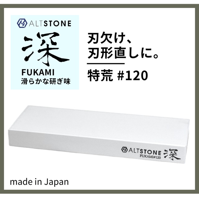 FUKAMI - Pro Power. Perfectly Compact for Home Use [English ver.] Includes English manual ✅ Coarse to medium sharpening — smooth, efficient, and compact. Designed for serious results at home. Ceramic whetstone set for coarse & medium (#300 / #1000) with Nagura The ALTSTONE FUKAMI whetstone set includes a #300 coarse grit and a #1000 medium grit stone. These Japanese-made ceramic sharpening stones offer efficient, splash-and-go sharpening performance for kitchen knives. Ideal for repair and daily edge maintenance in a compact, easy-to-use format. [Features] - High Grinding Power: WA abrasives deliver consistent sharpening performance with dense ceramic construction. - Versatile Application: Effective for both stainless and high-hardness steel kitchen knives. - Non-Slip Mat Included: Ensures safe and stable sharpening without a whetstone stand. - Thorough Inspection: Each item is quality-checked by both manufacturer and seller before shipping. [Specifications] FUKAMI300 – Coarse Sharpening Stone - Grit: #300 (Coarse) - Stone Size: 180 × 60 × 20 mm (7.1" × 2.4" × 0.8") - Nagura: 60 × 25 × 20 mm (2.4" × 1.1" × 0.8") - Weight: 430g (Main) / 70g (Nagura) - Material: Vitrified ceramic - Type: Soaking (for about 10 minutes ) FUKAMI1000 – Medium Sharpening Stone - Grit: #1000 (Medium) - Stone Size: 180 × 60 × 20 mm (7.1" × 2.4" × 0.8") - Nagura: 60 × 25 × 20 mm (2.4" × 1.1" × 0.8") - Weight: 430g (Main) / 70g (Nagura) - Material: Vitrified ceramic - Type: Saking (for about 10 minutes ) Planned by ALTWAYS.LLC and proudly manufactured in Japan. ✅ALTSTONE: Crafted for Sharpening Excellence in Japan In Japan, sharpening blades has never been just the work of professionals. For generations, people have used whetstones at home to maintain their kitchen knives — a tradition deeply woven into daily life. This culture shaped the development of Japanese whetstones. Brands like Shapton, King, Naniwa, and Suehiro have each refined bonding methods, abrasive quality, and sharpening feel to meet different needs. Japanese sharpening stones now set a high global standard for material quality, structure, and craftsmanship. ALTSTONE honors this legacy with the FUKAMI series—designed for a wide range of blades from stainless steel to carbon steel, including curved and utility edges. By controlling hardness and surface texture, we ensure a smooth, responsive sharpening experience. Whether you're just starting or already skilled, ALTSTONE stones help you achieve edges that cut cleaner and cook better. How to Sharpen a Knife with ALTSTONE ▶ Watch our sharpening tutorial on YouTube: https://www.youtube.com/watch?v=v7rpC0RKRgI&t=12s