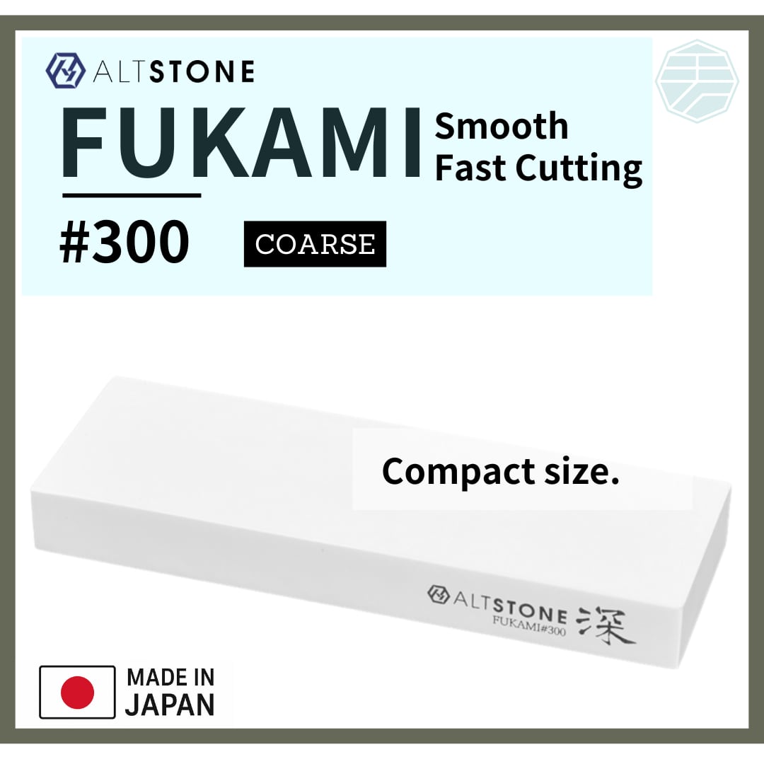 The ALTSTONE FUKAMI #300 coarse grit whetstone. These Japanese-made ceramic sharpening stones offer efficient, splash-and-go sharpening performance for kitchen knives. Ideal for repair and daily edge maintenance in a compact, easy-to-use format.