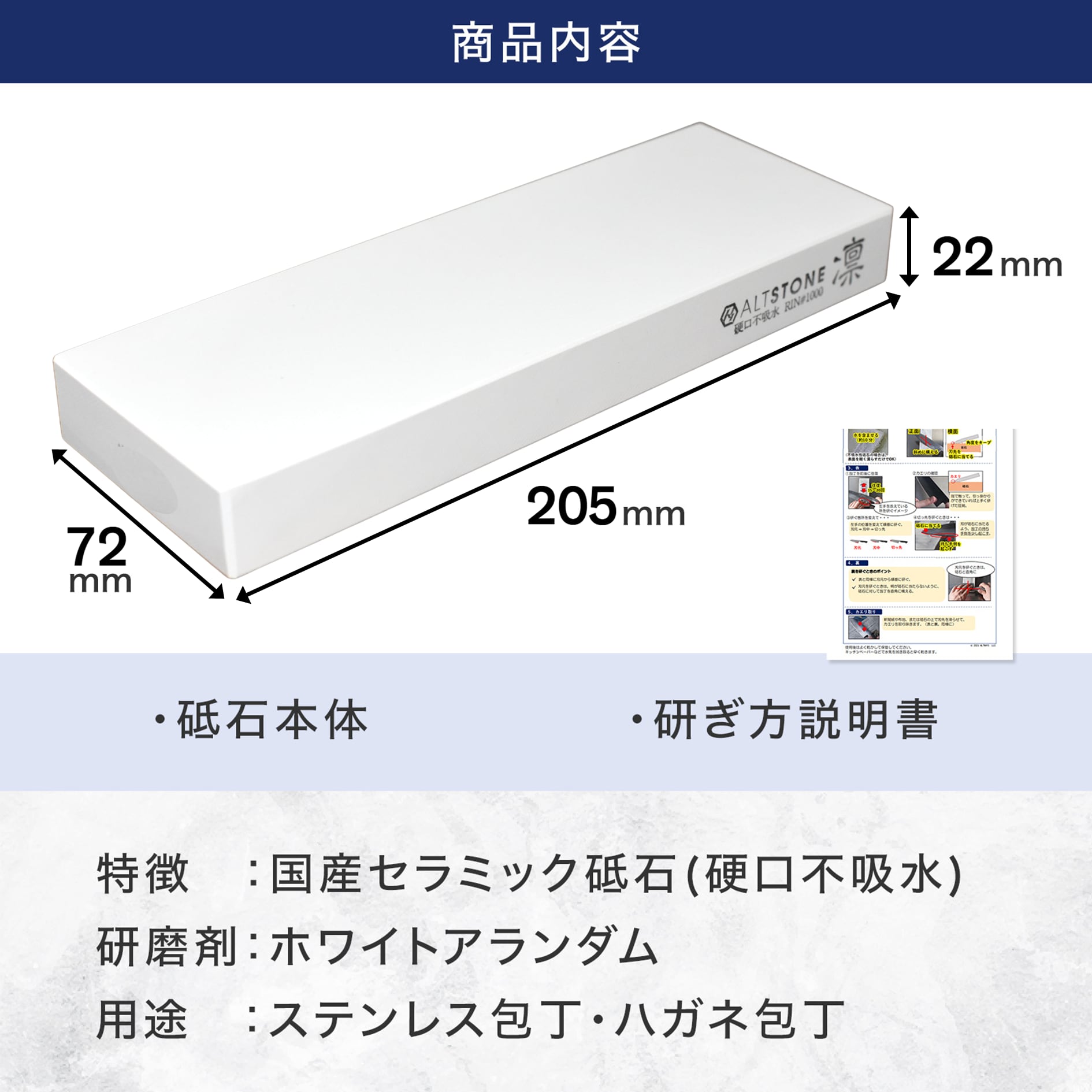 【ALTSTONE 凛 #1000 不吸水 レギュラーサイズ】 硬口で緻密に研ぐ 包丁研ぎ 中砥石 1000番 セラミック砥石 日本製、◇送料:全国一律無料