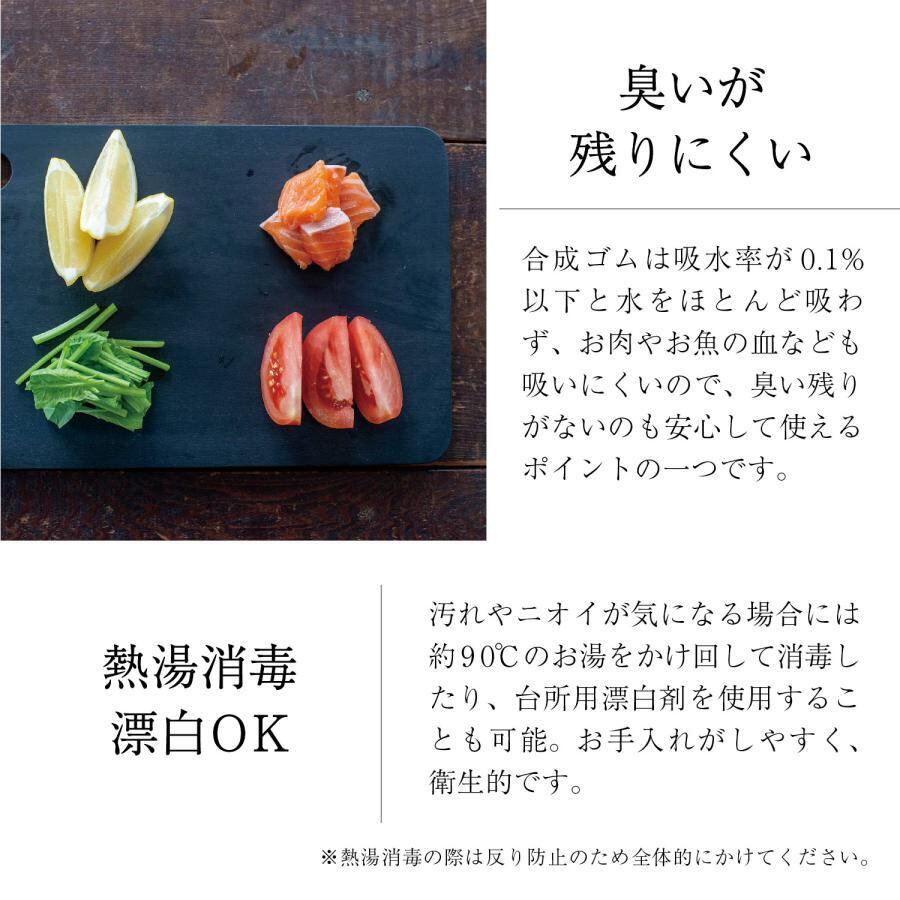 さらに水切れが良く乾きやすいので、毎日使いでも衛生的に続けやすい合成ゴムまな板です。
