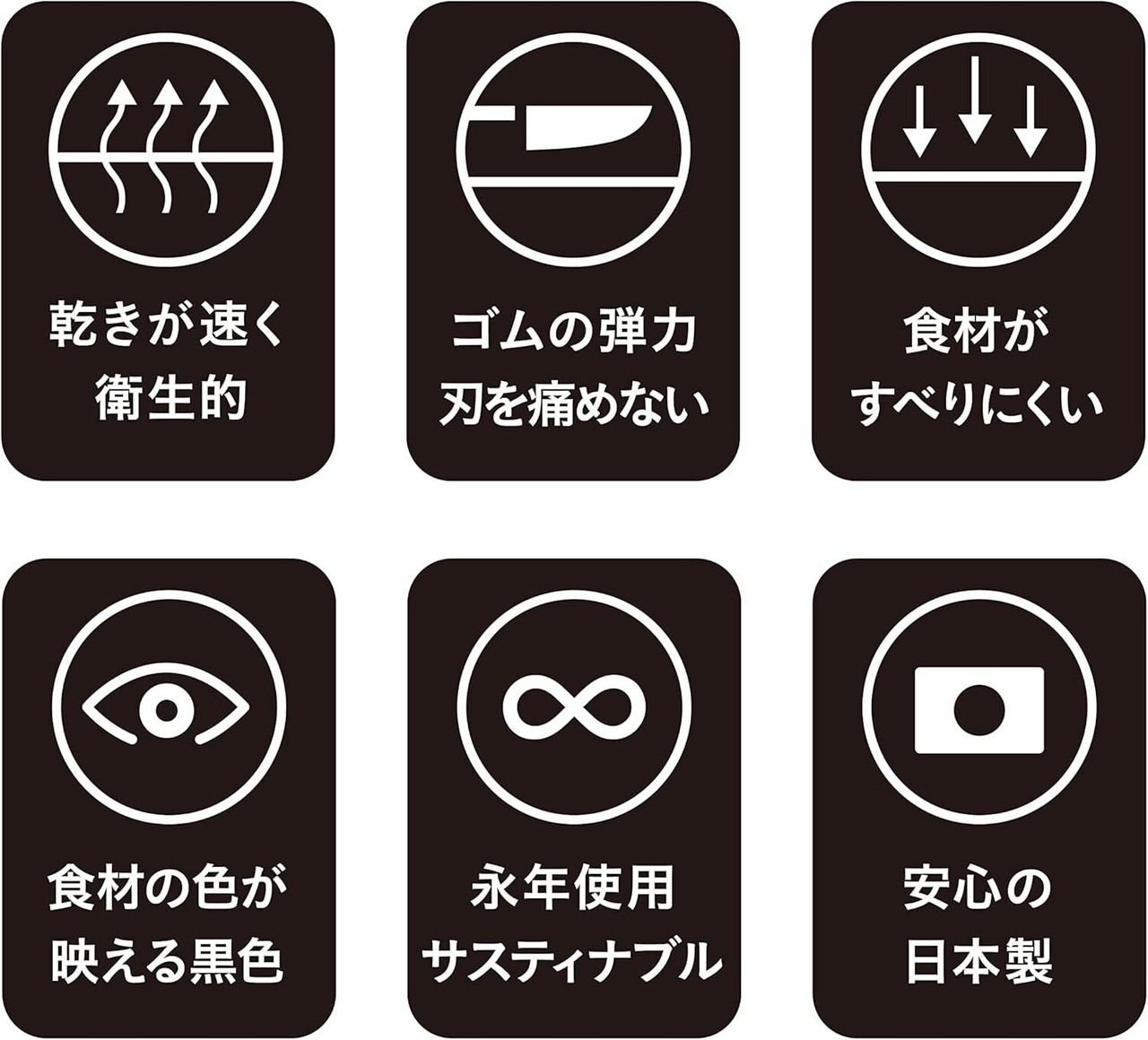 さらに水切れが良く乾きやすいので、毎日使いでも衛生的に続けやすい合成ゴムまな板です。