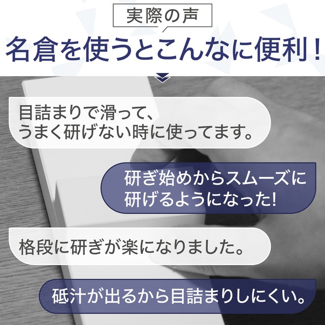 使用方法:砥石本体と名倉砥石の両方にしっかりと水を含ませてから、名倉砥石の面で砥石本体の面を擦ってください。