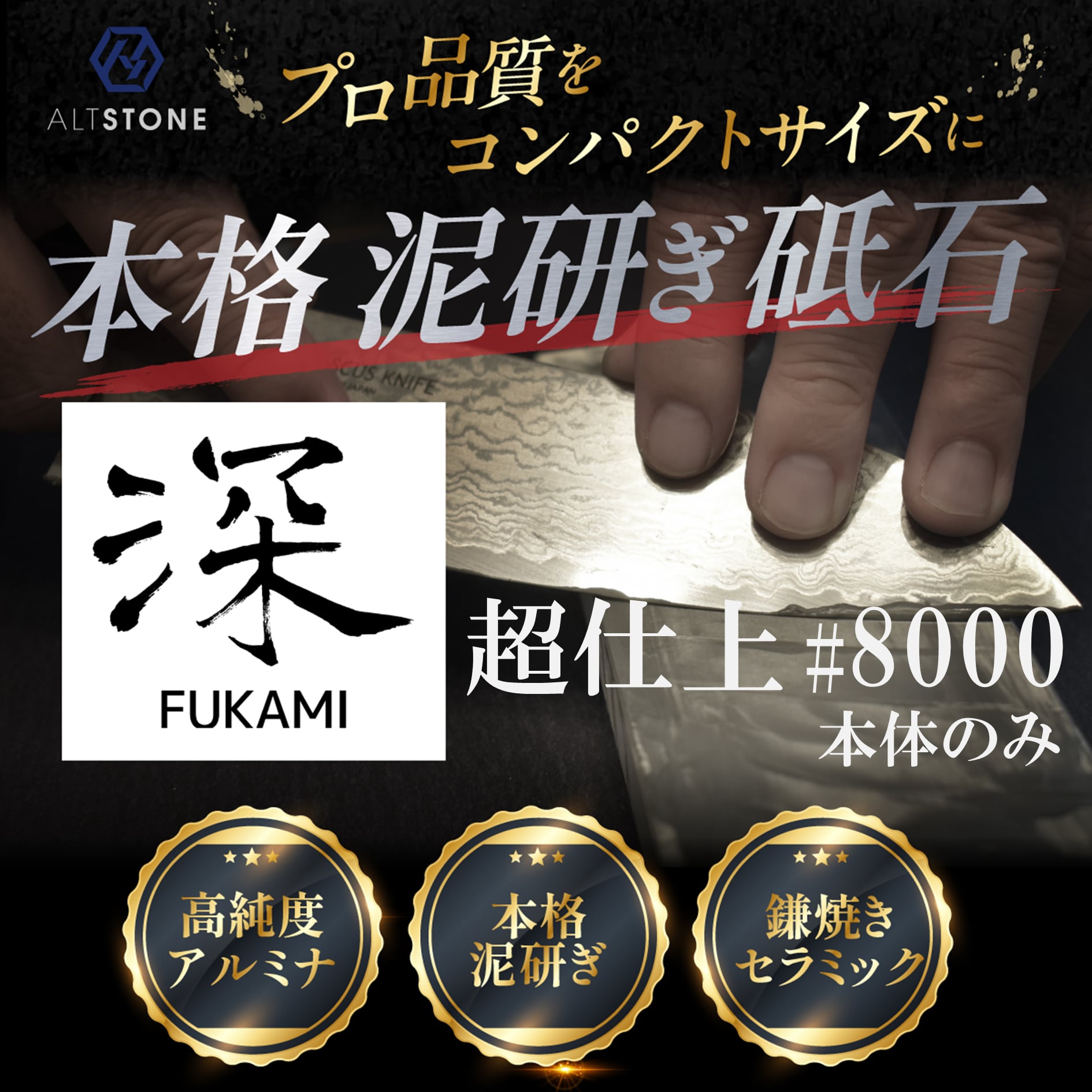 砥石 超仕上げ【ALTSTONE 深 #8000 】 8000番、 滑かな研ぎ味 FUKAMI、 セラミック砥石 日本製 (本体のみ)